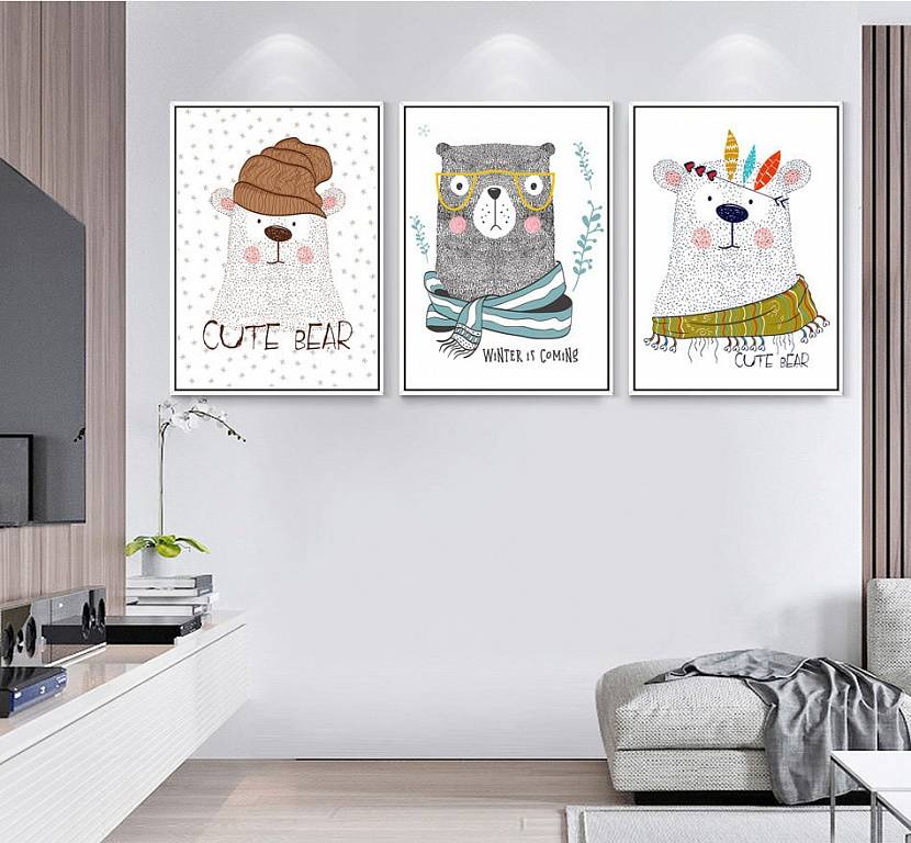 - уместны постеры с любимыми мультиками, сказочными героями, милыми зверушками, изображениями природы;