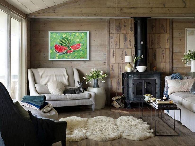 Для прованса, а также направления кантри хорошо подходит акварельная живопись в легкой форме. Скандинавский стиль не может обойтись без морских пейзажей. А минимализм приветствует черно-белые фотографии, абстракцию и графику поп-арта.
