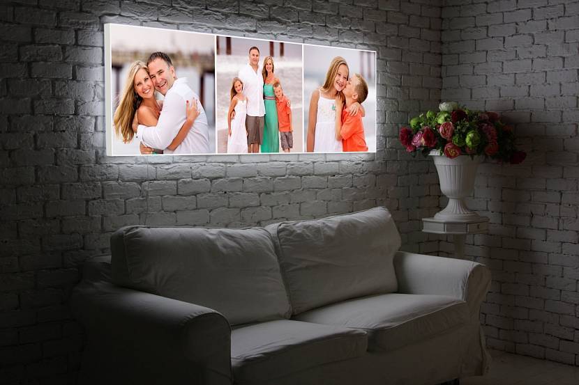 Галерейная натяжка холста на подрамник. Толщина такой конструкции (отступ от стены) — 15 мм., вес небольшой, так как в качестве основы используется деревянная рейка. Само изображение чаще всего печатается в таком случае на холсте, реже на бумаге. Но для долговечности и соблюдения эстетических параметров мы настоятельно рекомендуем холст! Подробнее о фотографиях на холсте >>