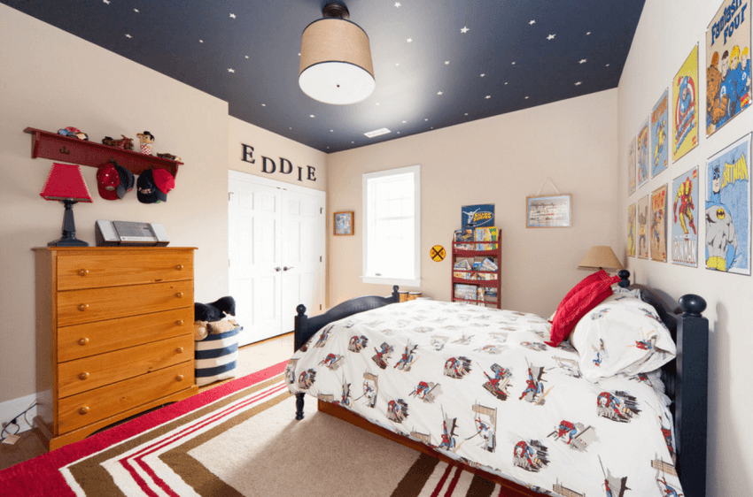 В детской спальне интересно будут смотреться потолок с ручной росписью. Так вы сможете создать действительно неповторимый дизайн, который будет полностью соответствовать интересам ребенка.