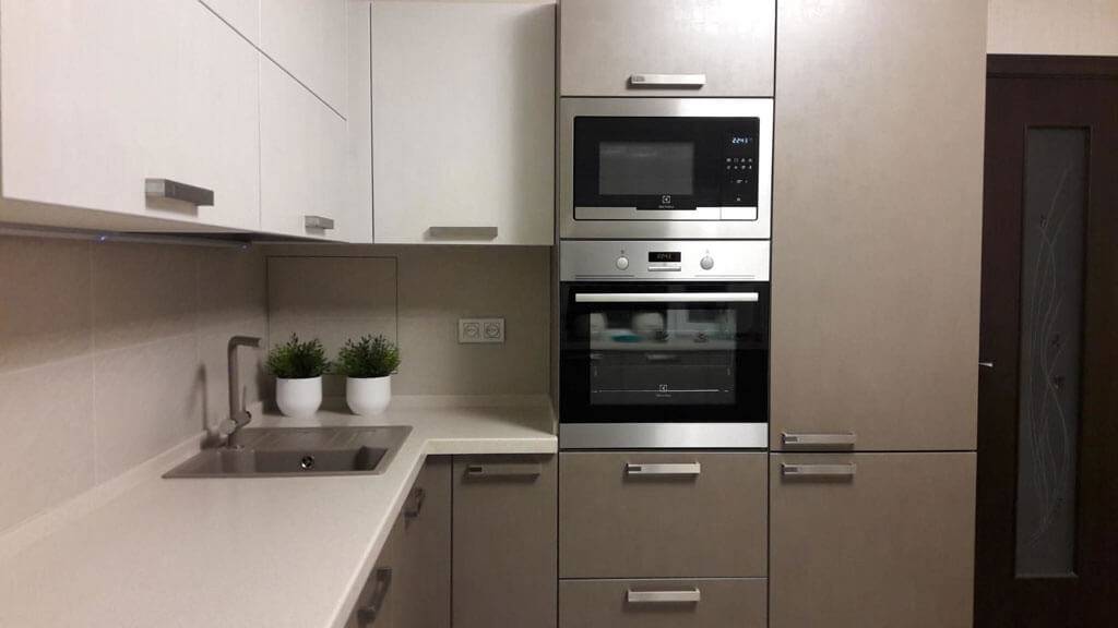Высокие шкафы также удобны для встраиваемой техники, например, духового шкафа или СВЧ-печи, что существенно экономит свободное место в квартире или доме.