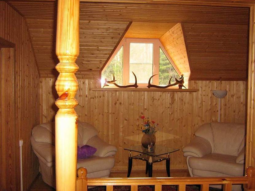 Деревянные дома из бревен часто отделывают вагонкой Блок-Хаус. Полукруглая поверхность имитирует бревенчатую кладку стен и хорошо вписывается в общий дизайн интерьера.