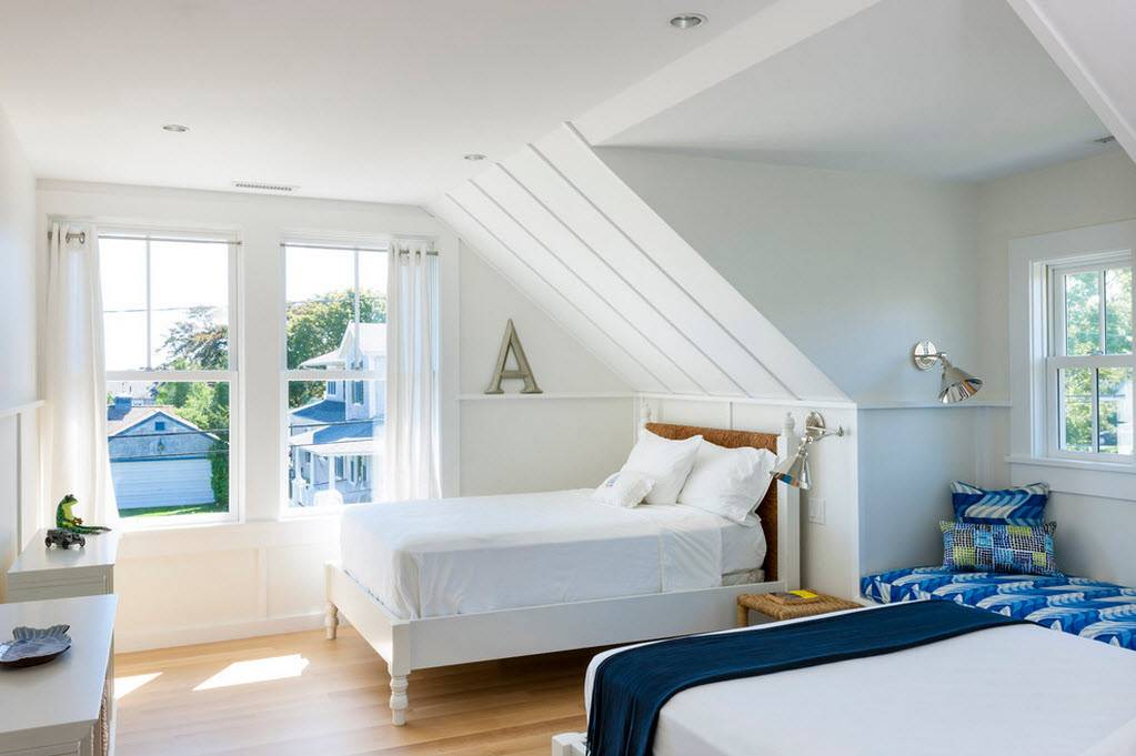 Мансардная комната отличается нестандартной планировкой, предоставляющей широкие дизайнерские возможности. В данном чердачном помещении для подростка мальчика в основном устанавливают мебель, имеющую скошенные углы и иногда оборудуют спальню интересной нишей под кровать.