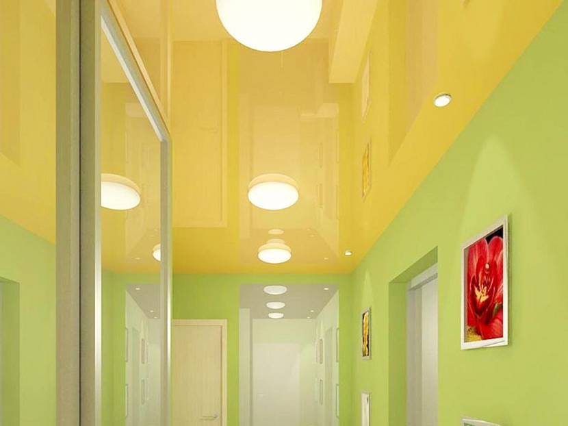 Полотно желтого цвета в коридореИсточник potoloktorg.ru