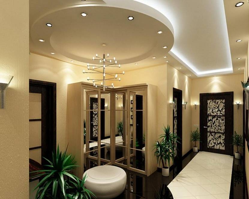 В большинстве квартир площадь коридоров и прихожих не слишком большая, по этой причине, для ее визуального увеличения, необходимо тщательно подбирать различные варианты отделки не только стен, но и потолков.