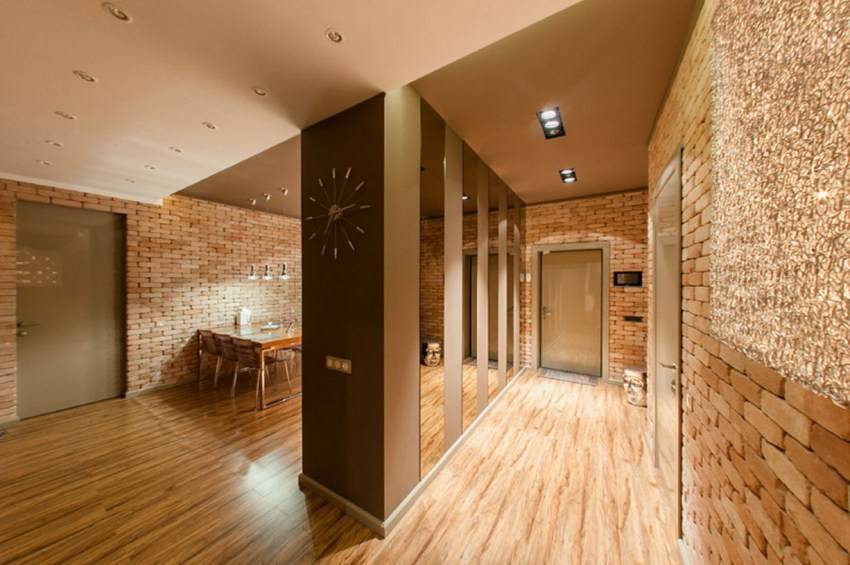 Интересный вариант отделки коридора, хоть немного и потерявший свою актуальность. Однако его не стоит сразу отметать, ведь он выигрывает у своих противников в цене.