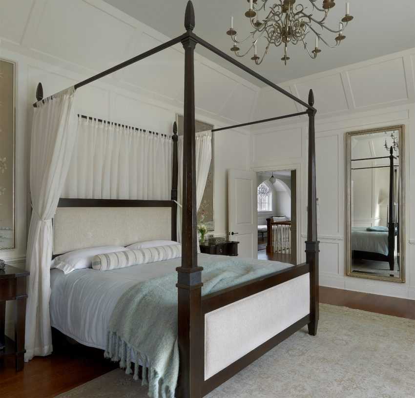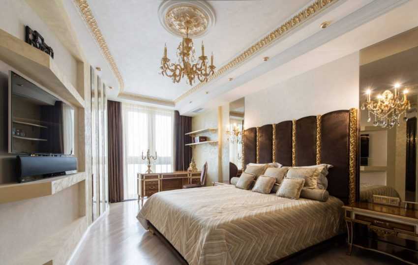 классика. Сатиновые или матовые белые полотна, а также айвори, экрю, цвета молока, сливок, холодные тона прекрасно смотрятся на фоне классического оформления спальни. Уместными будут и одноуровневые, и многоуровневые потолки, но выбирать следует монохромные варианты;