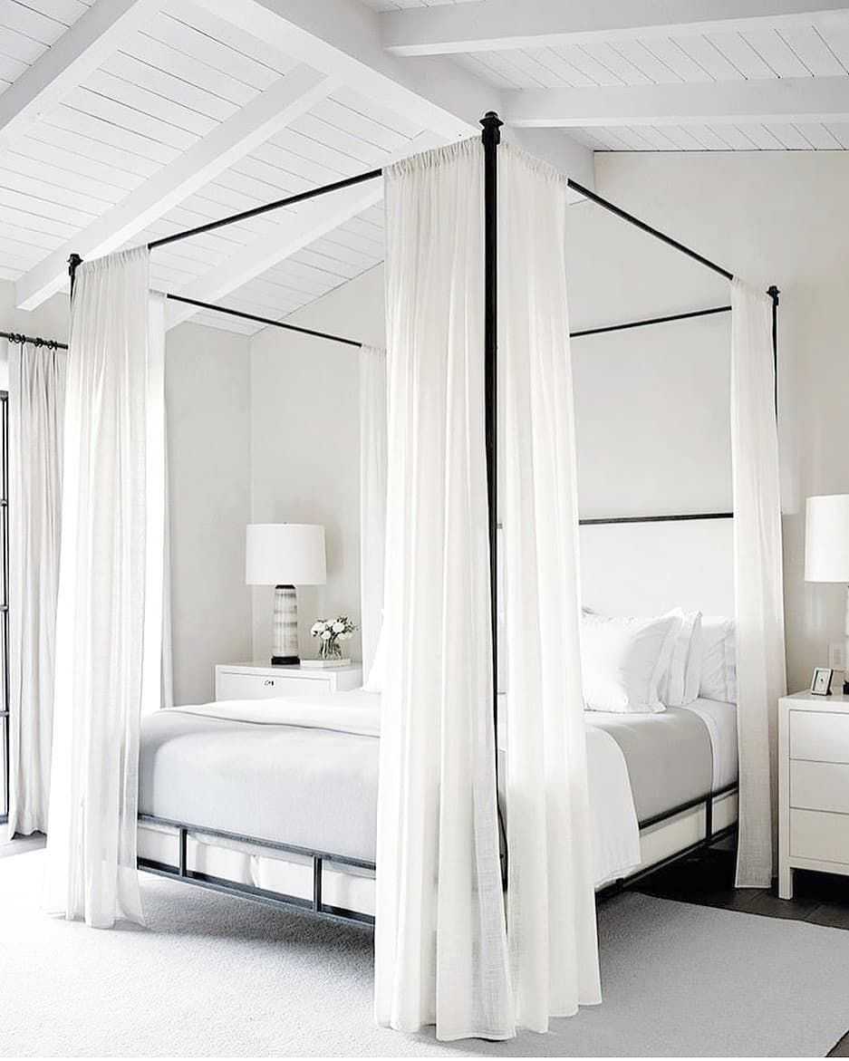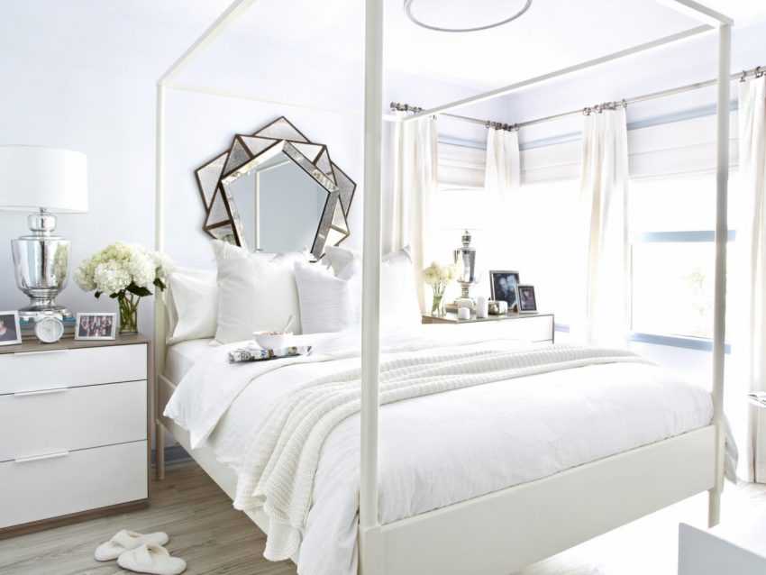 Белая опочивальня, наверное, никогда не выйдет из моды, это неизменная классика оформления спальни. Белые оттенки могут быть представлены в виде основного цвета отделки или служить лишь тоном для применения всех остальных цветов. Последний вариант поможет убрать некоторую холодность чисто-белого цвета.