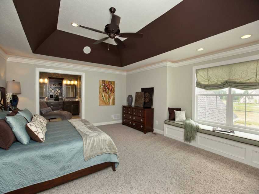 Идеи потолка спальни в современном стиле: все современные дизайны лучше дополнять натяжным или навесным потолком. Также необычно будет смотреться сочетание нескольких методов монтажа потолка, в тренде в последнее время многоуровневые потолки, разделяющие комнату на зоны.