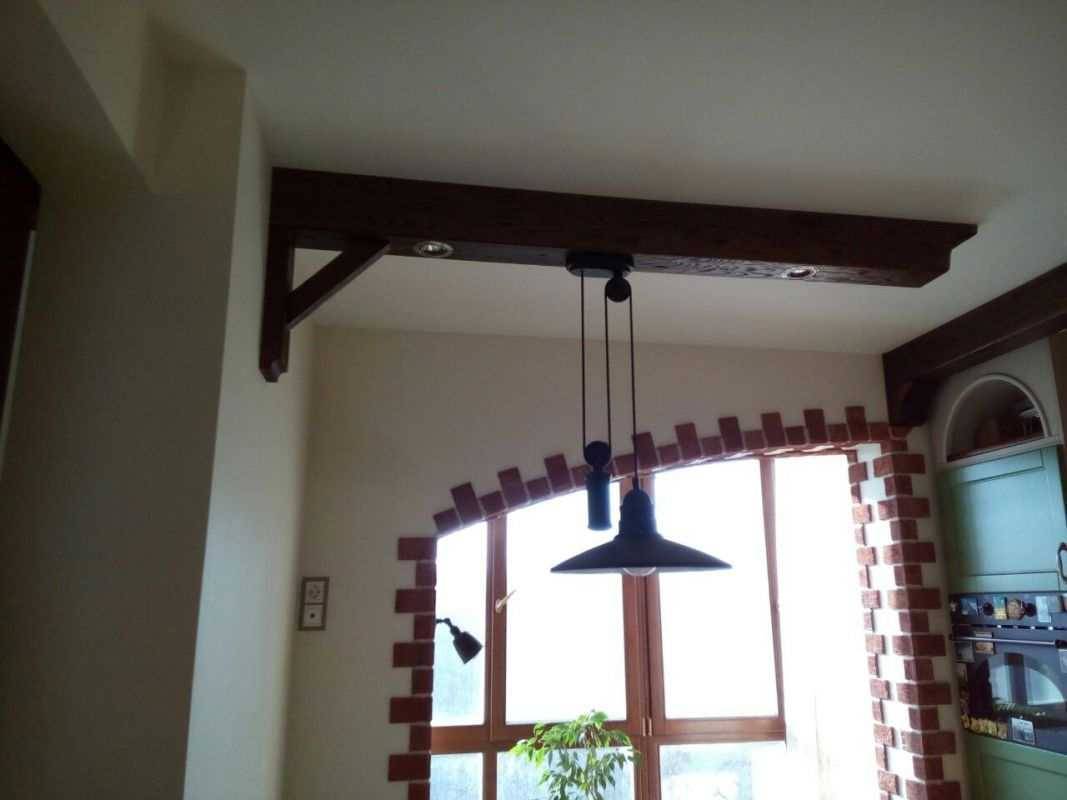 Это самый простой вариант размещения фальш-балок в современной квартире. Если вы хотите украсить кухню или зал быстро, недорого и собственными силами, лучшего варианта не найти.
