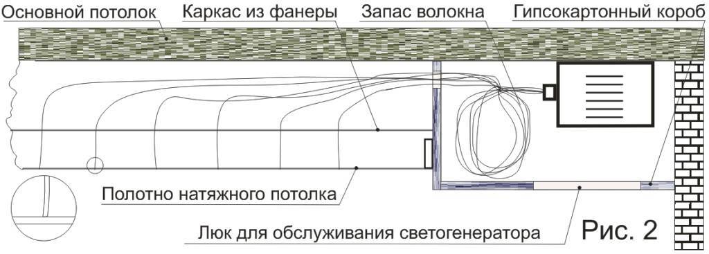 Схема создания потолка звездное небо с окогком обслуживания светогенератора