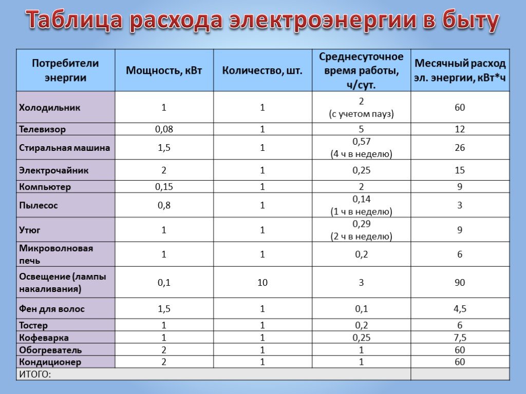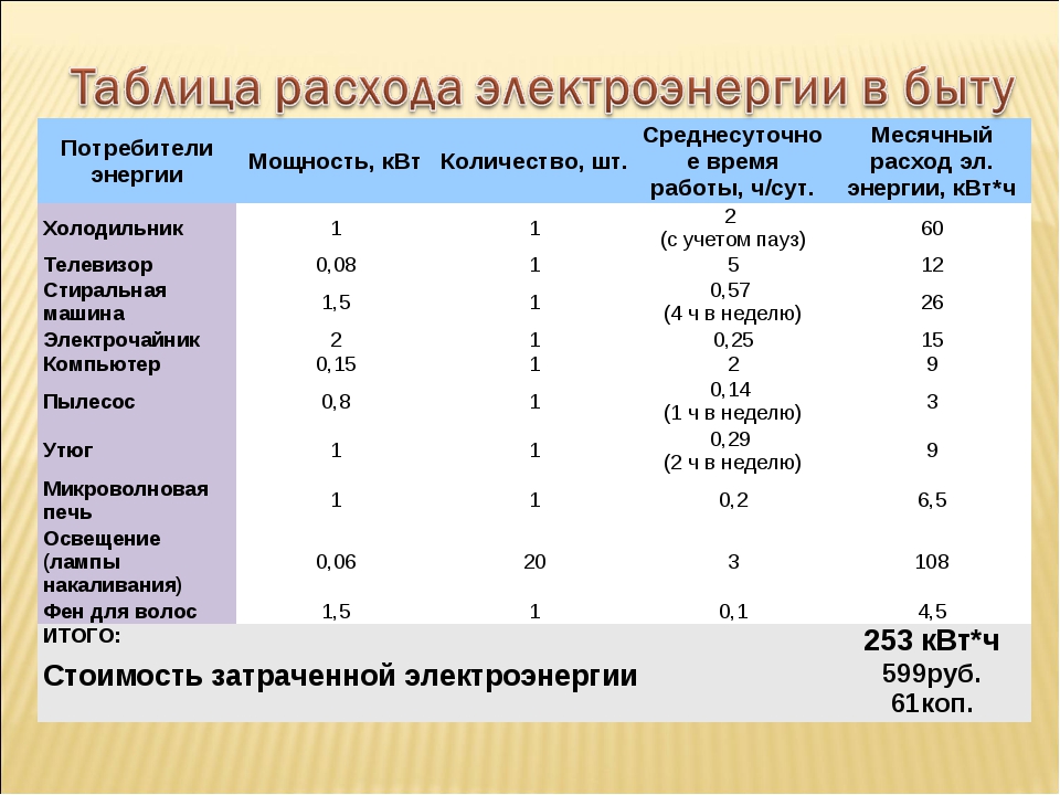 В некоторых случаях на технике указывается отдельно класс энергопотребления, стирки и отжима; в электрических духовках во внимание принимается объем камеры и мощность; для посудомоечных машин отдельно устанавливается расчет эффективности мытья посуды и сушки; класс кондиционеров рассчитывается на базе соотношения индекса производительности холодного потока к фактическому потреблению электричества для охлаждения; для холодильных и морозильных камер принадлежность высчитывается путем соотношения фактического расхода электричества к стандартному; класс телевизионной техники определяется электропотреблением и площадью экрана.. Итак, вне зависимости от способа расчета, индекс энергопотребления влияет непосредственно на эффективность функционирования устройства. Рекомендуется обращать внимание на маркировку и приобретать энергосберегающие приборы, обеспечивающие достаточный уровень мощности при меньшем потреблении электричества