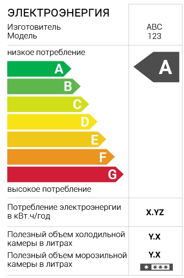 Согласно европейским стандартам, вся приобретаемая техника должна иметь определенный класс энергоэффективности, то есть на корпусе и в паспорте техники клеится этикетка соответствующего цвета по шкале и указывается буквенное обозначение.