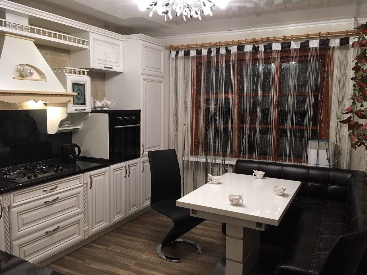 Классический стиль обустройства кухни можно назвать золотой серединой, идеальным вариантом, способным угодить любым вкусам. Обстановка такого помещения должна быть несколько сдержанной, но не строгой — оживить ее помогут светлые шторы на окнах, красивая кружевная скатерть, изящная фарфоровая посуда в серванте.