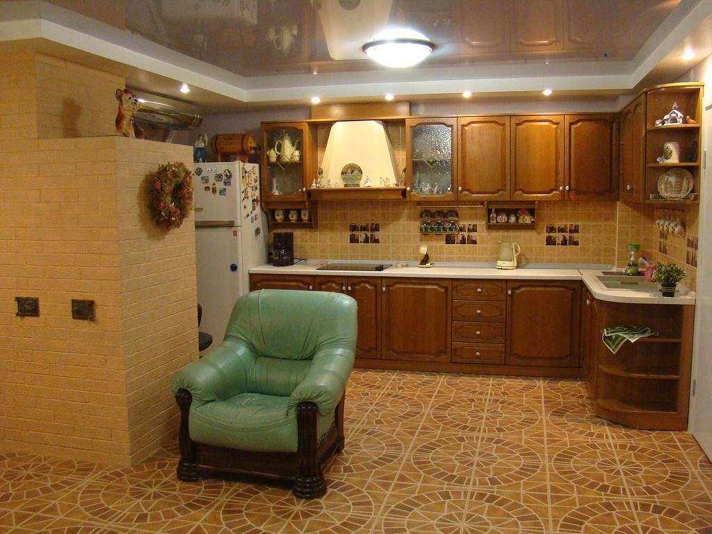 Как уже было сказано, все используемые для отделки кухни материалы должны быть обязательно натуральными и высококачественными. Применение синтетических материалов допускается, однако они должны быть максимально приближены по качеству к своим натуральным аналогам.