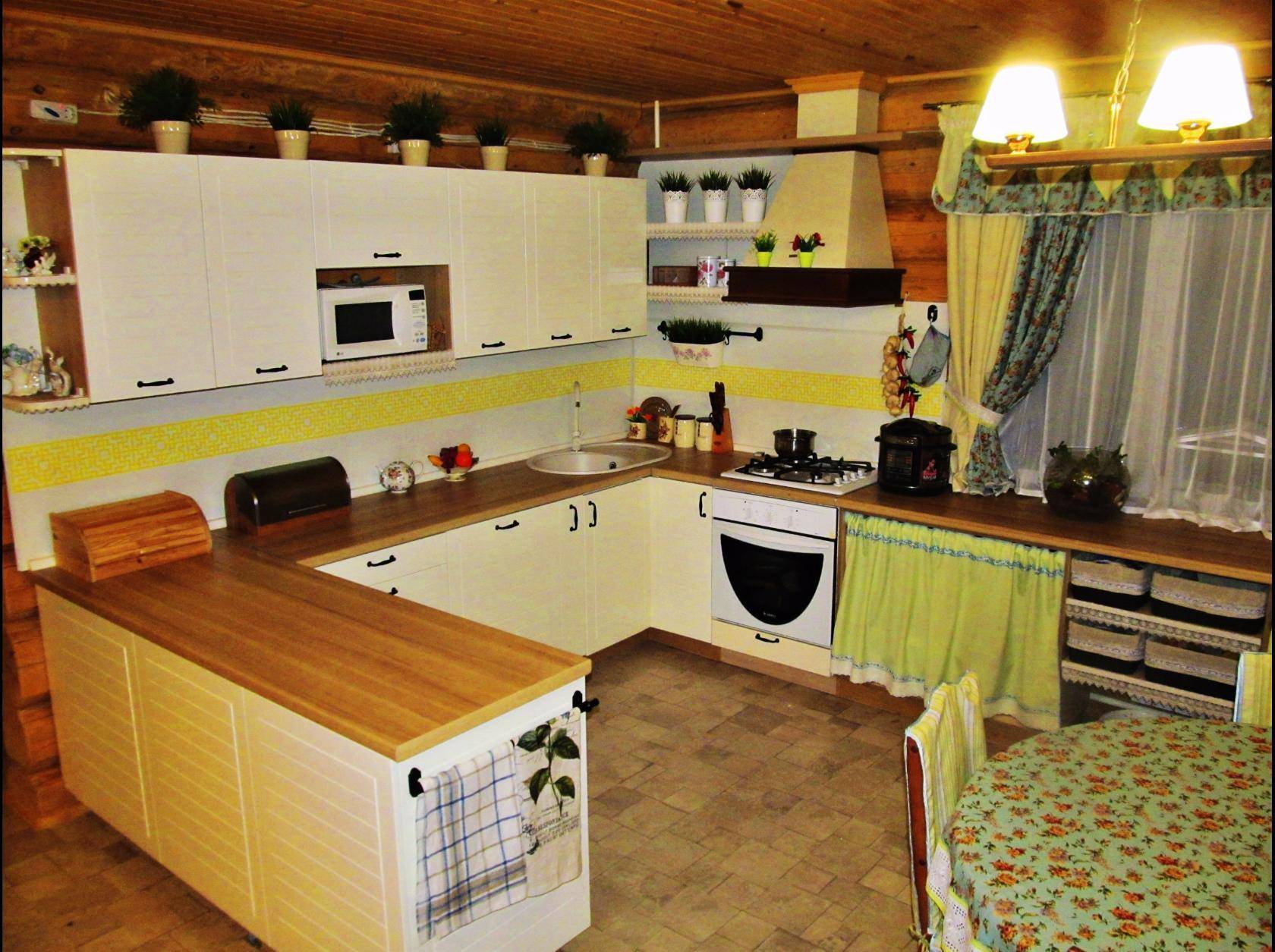 Как уже было сказано, все используемые для отделки кухни материалы должны быть обязательно натуральными и высококачественными. Применение синтетических материалов допускается, однако они должны быть максимально приближены по качеству к своим натуральным аналогам.