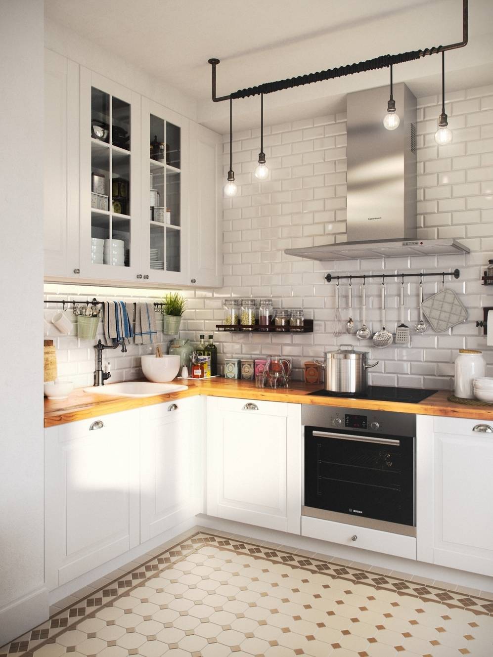 На белых стенах просто “горят” всяческие декоры и именно они будут привлекать внимание. А ещё фурнитура, техника, посуда, текстиль..