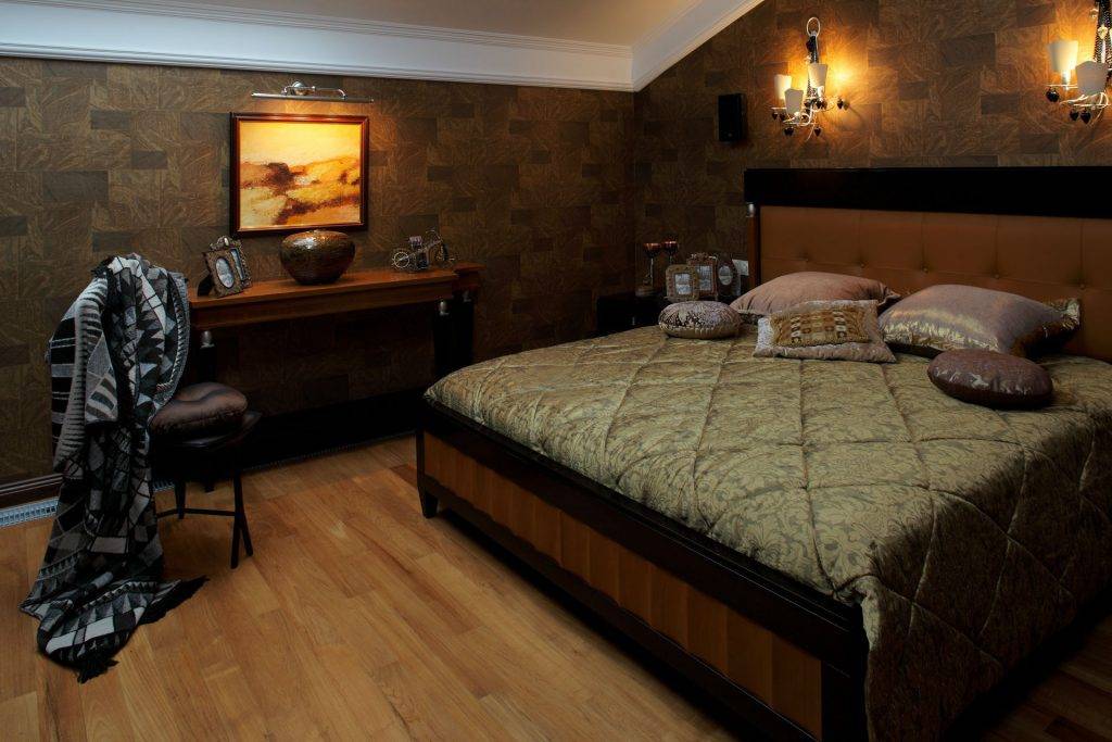 Темные обои в спальне стоит использовать только в тех случаях, если помещение: