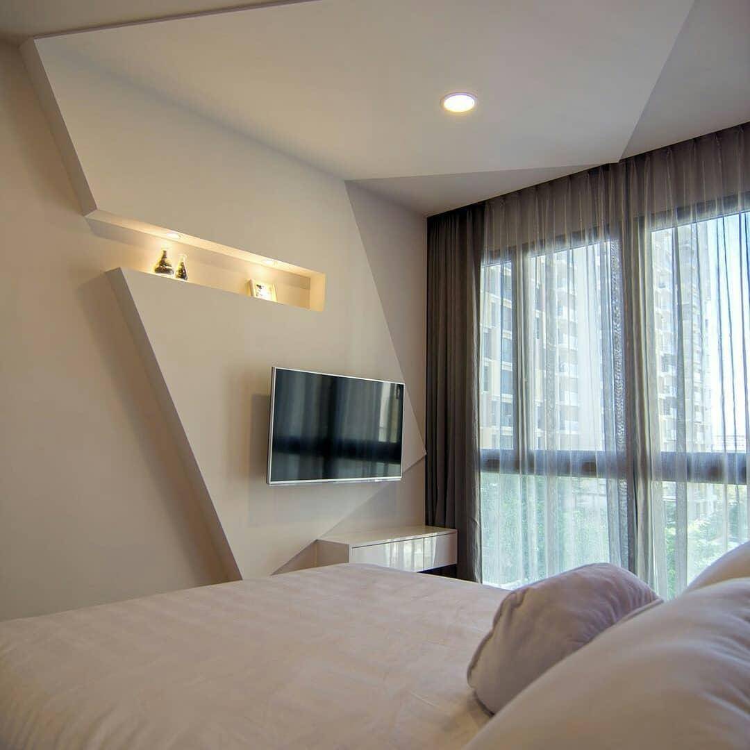 В первом случае эту поверхность делают контрастной, используя более яркие цвета или фотообои. Такая отделка поможет убрать некоторые конструктивные недостатки комнаты и сделать ее более правильной для восприятия.