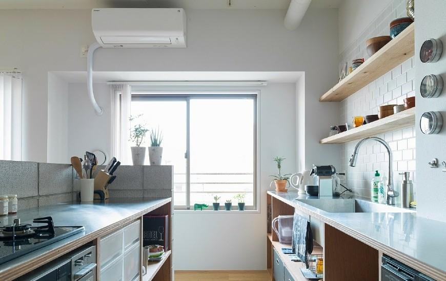 Кондиционер на кухне размещают в удалении от газовых и электрических приборов.