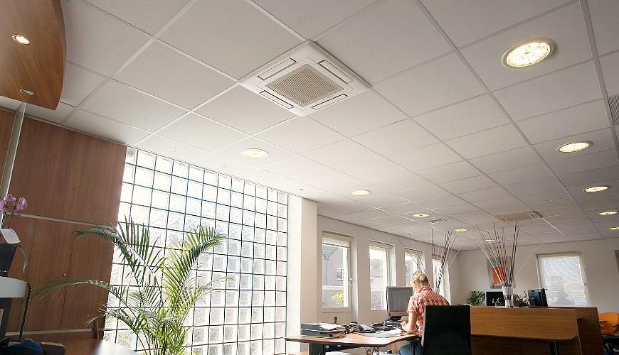 Кондиционер в офисе монтируют так, чтобы поток воздух направлялся вдоль потолка или стен.