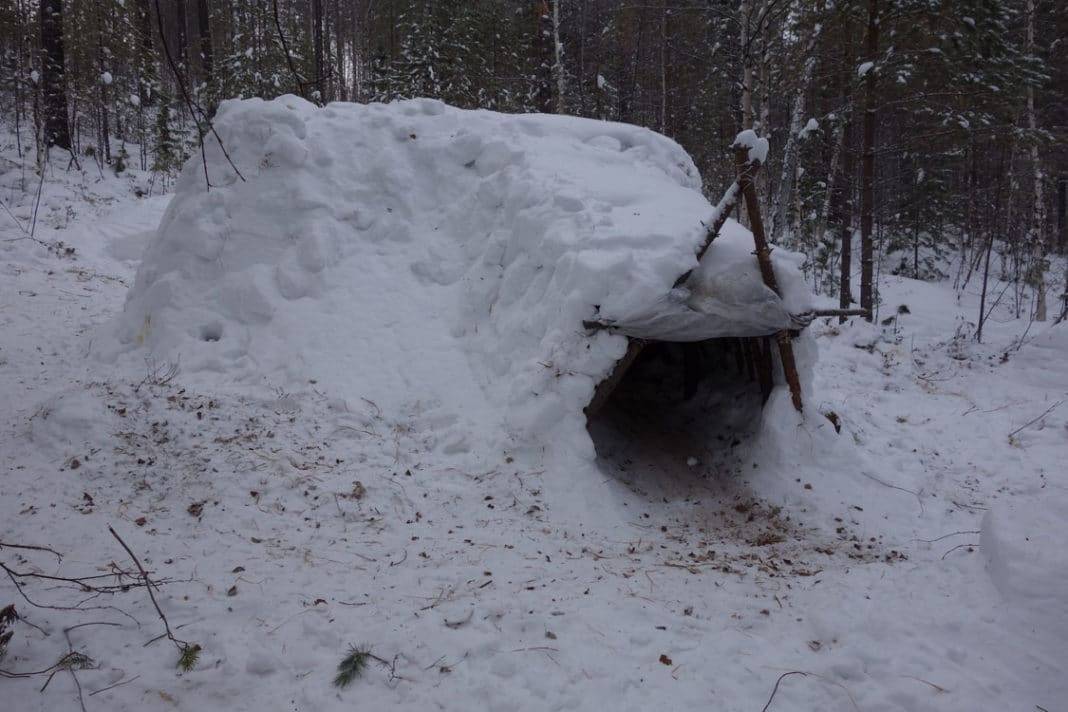 Стоит отметить, что убежища, строящиеся зимой в лесу или другой местности, отличаются от тех, которые строят в теплое время года. Если на улице зима, обязательно стоит прихватить с собой подстилку в виде полиэтилена или лапника.