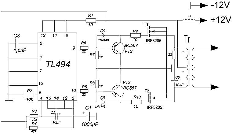 - ШИМ-контролер TL494. Основа всей схемы.