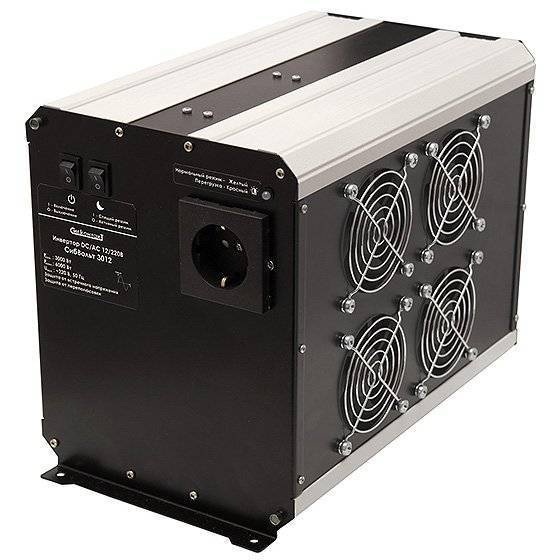Супермощный инвертор Сибвольт 3012 (3000 Ватт) предназначен для питания практически любого оборудования. Он имеет синусоидальный сигнал, соответственно, высокую стоимость – более 33000 рублей. Масса преобразователя около 7 килограммов.