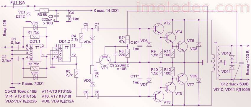 Схема инвертора мощностью 300 Вт