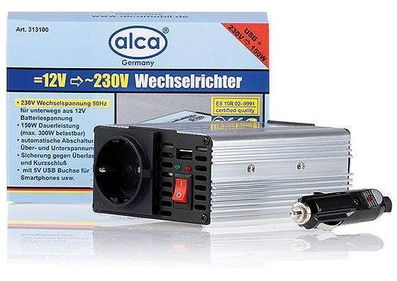 Как заявляет производитель, преобразователь напряжения ALCA 313100 12/220В имеет номинальную мощность 150 Вт, а пиковую — 300 Вт.