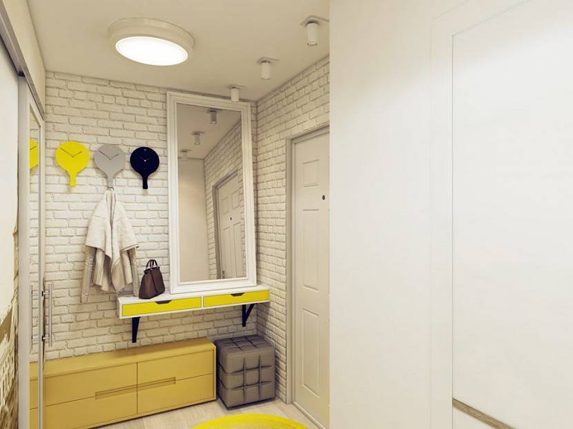 Если прихожая довольно просторная, можно применить выпуклую облицовку стен. Отлично подойдет кирпич, который чаще всего выпускается в красном или белом цвете. Вы можете перекрасить такой отделочный материал без проблем. Также хорошо подойдет сочетание белых стен с серым кирпичом — это идеальное решение для скандинавской планировки.