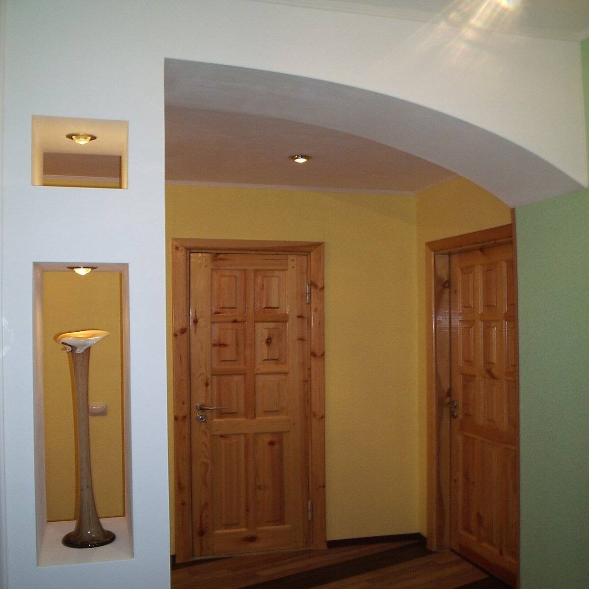 Несколько сгладит впечатление от чересчур узкого перехода от входной двери к комнатам дверной проем в виде арки. Правильно расположенное зеркало в пол способно зрительно сделать помещение менее вытянутым.