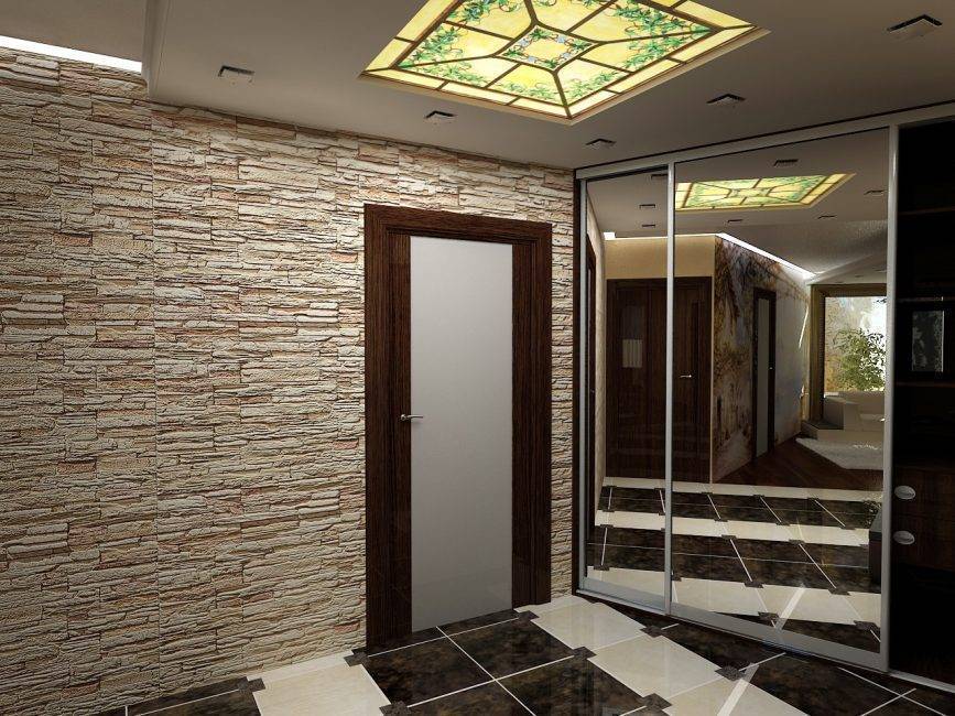 Обратите внимание! Чтобы визуально расширить пространство, используются хитрые приемы. Проемы лучше оформить в виде арки, а вдоль прохода разместить зеркальные полоски