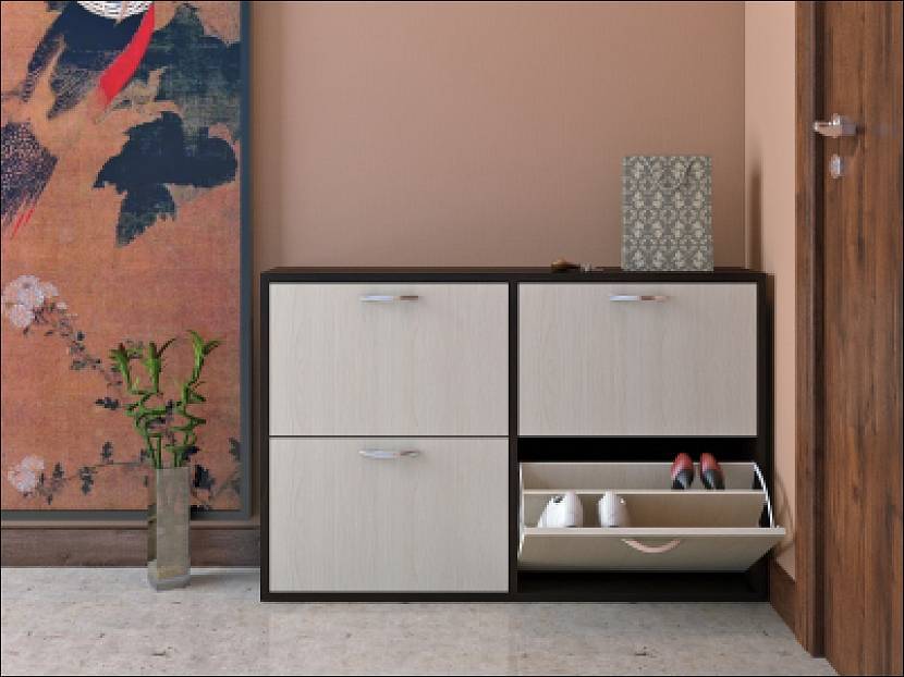 Установленные под ней ящики для хранения обуви можно использовать как сиденья, если крышки декорировать обивочным материалом.