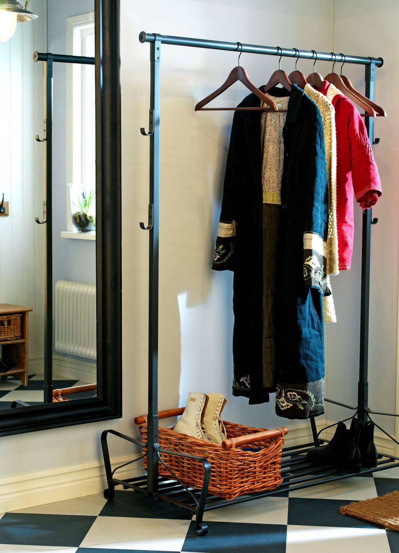В качестве держателя тремпелей использовали металлический профиль, окрашенный в черный цвет. Получилось просто и стильно.