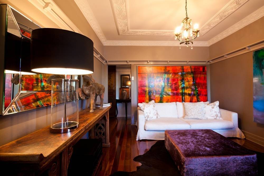 Современная живопись и яркие картины — популярные аксессуары в подобных интерьерах