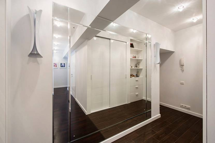 Иногда маленькая площадь прихожей не позволяет разместить все эти предметы. Тогда дизайн предметов разрабатывается так, чтобы в одном совмещать несколько функций: полку для обуви используют как стульчик, а дверца шкафа имеет зеркальную поверхность. Прекрасным примером такой многофункциональности выступают угловые шкафы-купе.