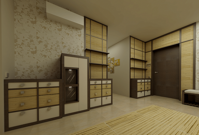 Стандартной текстурой для мебели является имитация дерева. Но это всего лишь шаблон, на самом деле текстура может быть любой и это почти не влияет на стоимость. Узкий коридор требует сокращения количества цветов и материалов, чтобы пространство не было перегружено.