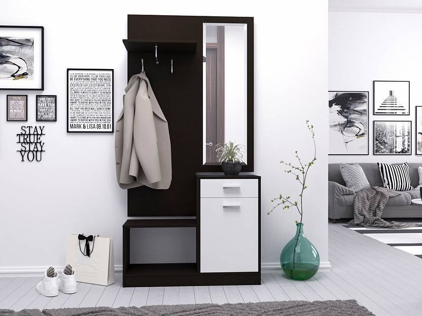 Минимальный набор предметов обстановки прихожей площадью до 7 квадратных метров следующий: