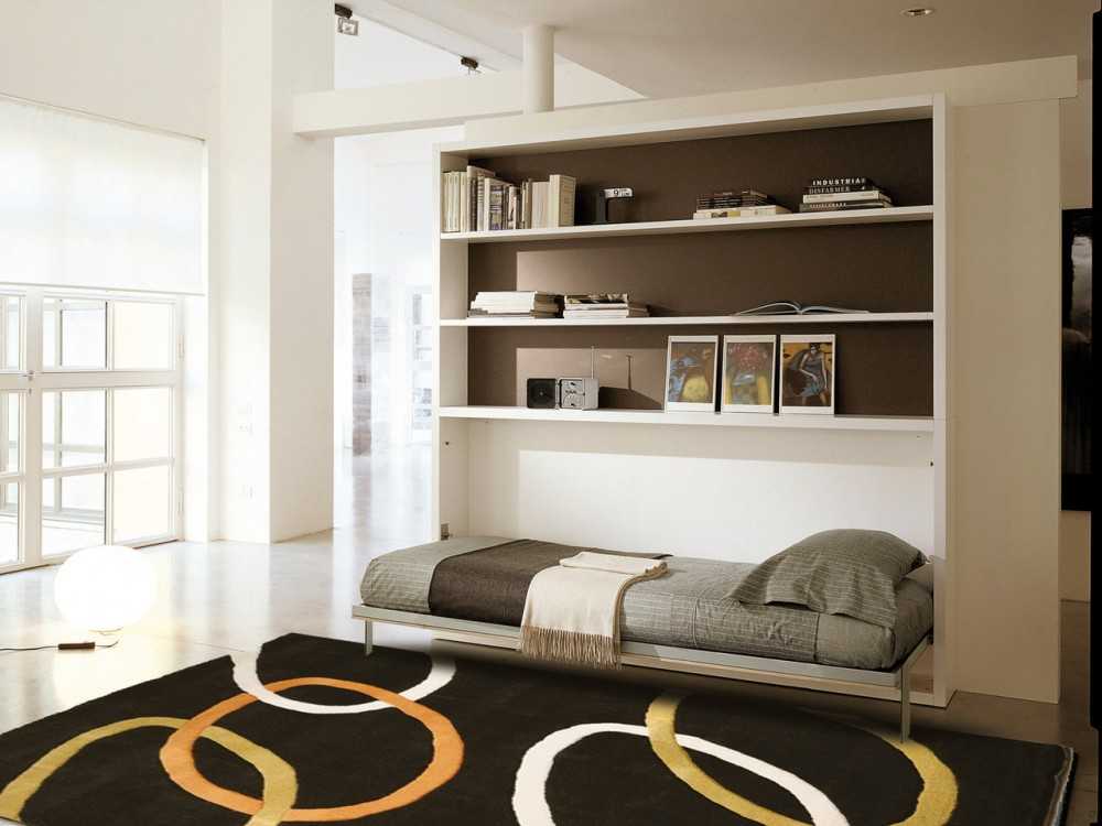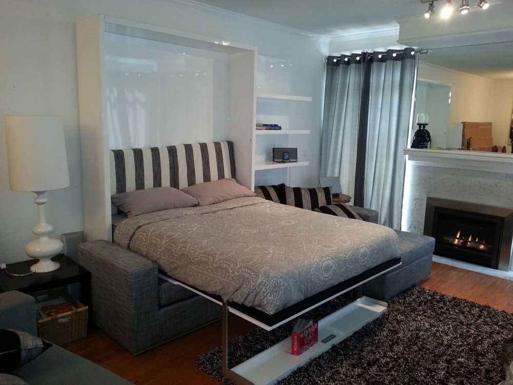 Функциональная кровать-шкаф будет являться приемлемым вариантом даже для маленькой спальни