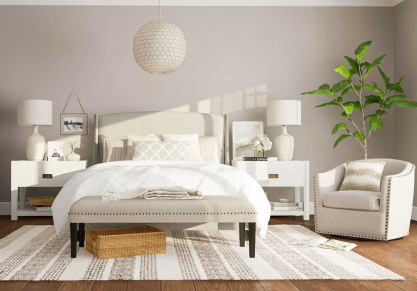 - Сочетаемость с мебелью в комнате: например, кровать белого цвета и тумбочка.