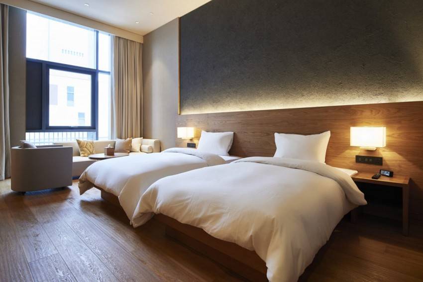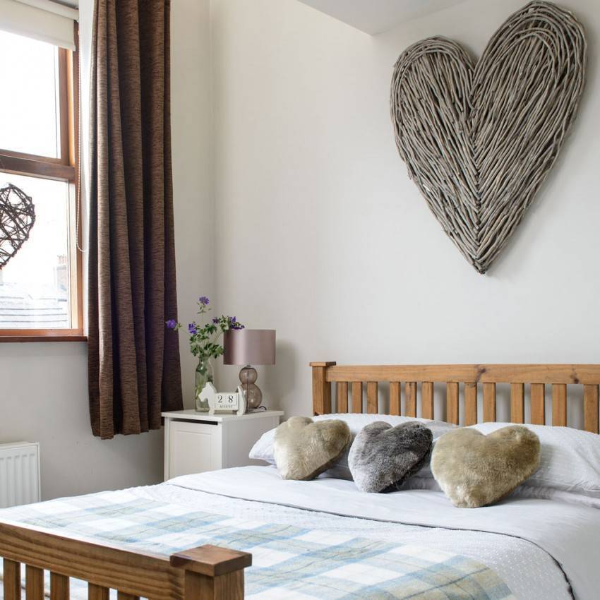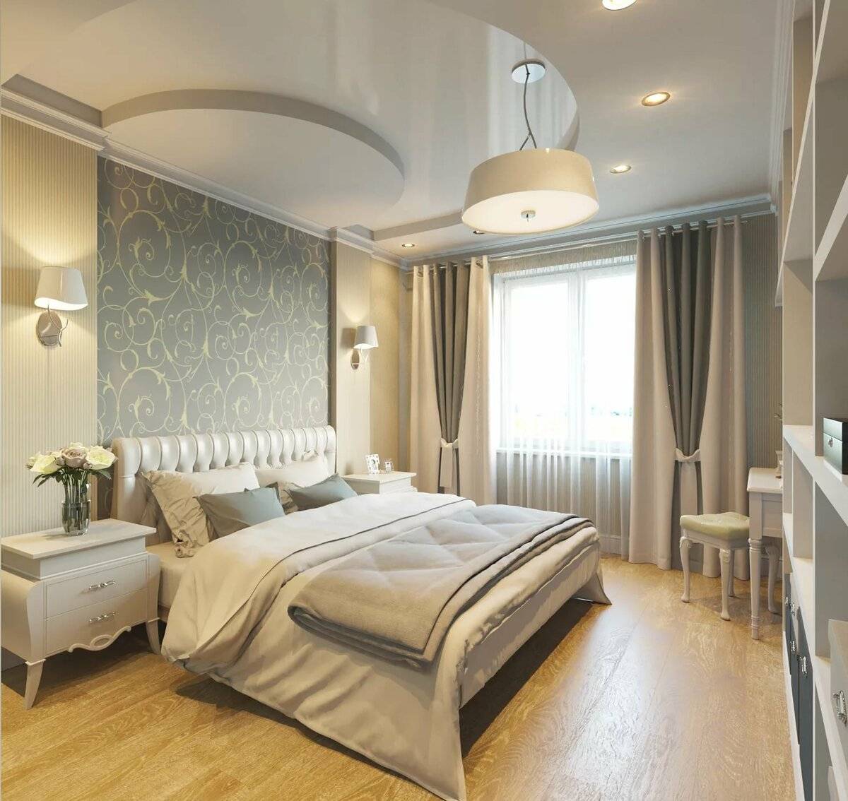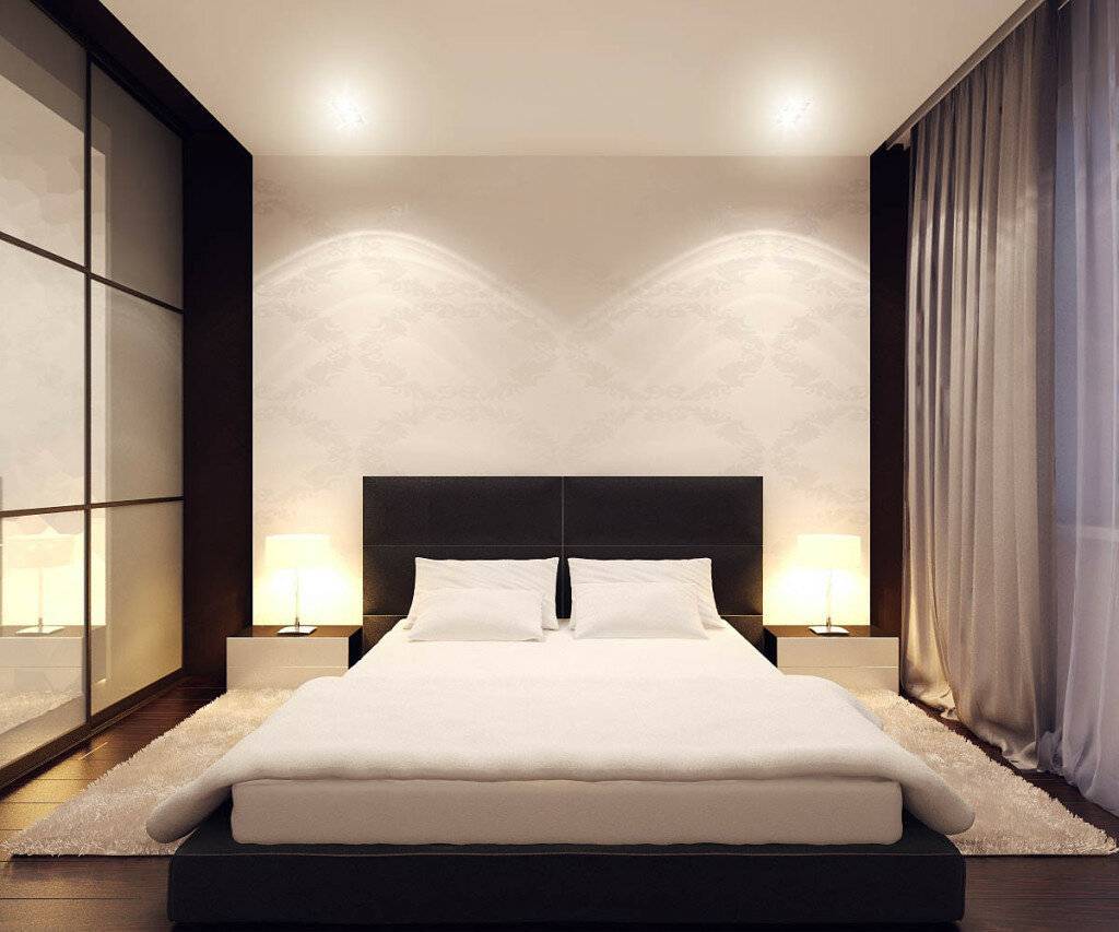 В небольшом помещении нужно ставить двуспальную кровать так, чтобы обеспечить проход к обоим спальным местам и оставить свободное пространство у изножья кровати.