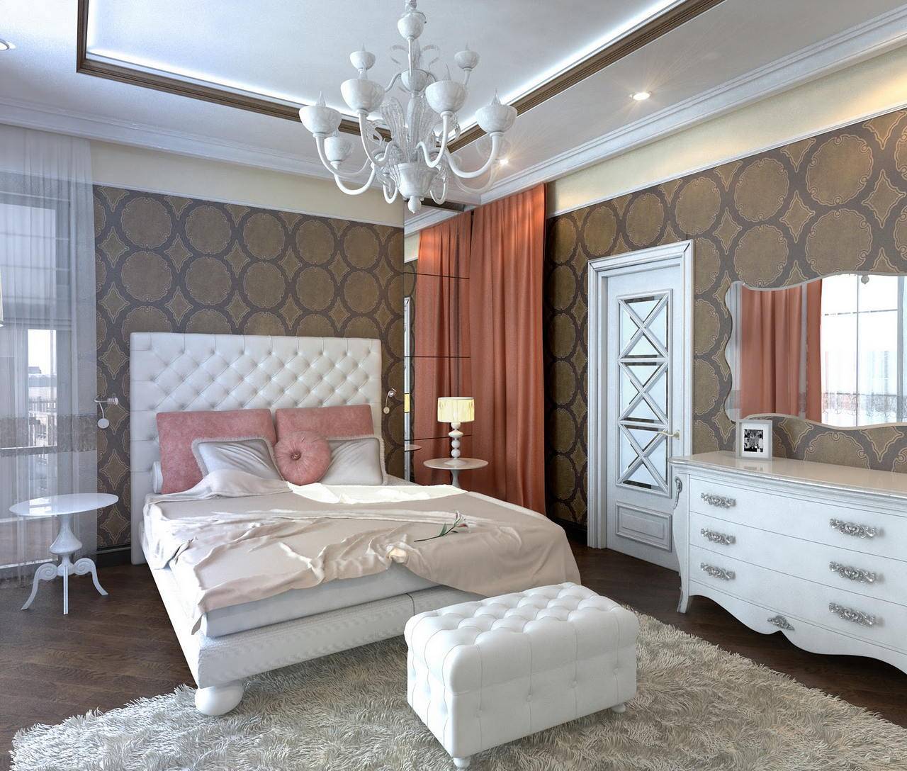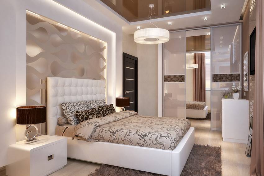 При выборе мебели следует учитывать габариты спальни. Если она достаточно просторная, то можно приобрести купейный шкаф. Если нет, то без комода обойтись все-таки не получится. А установка комода предполагает и покупку зеркала к нему. Это не просто дань традиции, а возможность визуального расширения пространства – известный дизайнерский прием. К слову, именно по этой причине двери в купейных шкафах делают зеркальными. В любом случае, зеркало, размещенное в спальне, может очень пригодиться.