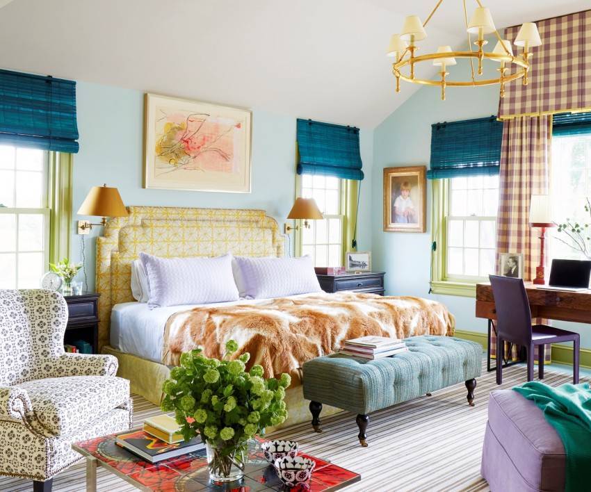 В вытянутой спальне кровать по возможности лучше располагать поперек комнаты. Однако если между изножьем кровати и стеной остается слишком мало пространства (меньше 70 см), лучше поставить кровать вдоль длинных стен. При условии, что возле каждого спального места остается по 70 и более см.