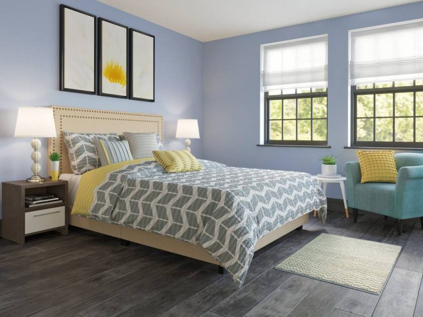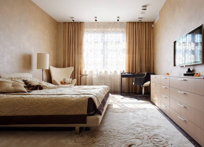 Такой проход к кровати позволит с комфортом раздеться и улечься. Если кровать двуспальная, очень желательно оставить такие проходы с обеих сторон. Заправлять кровать и менять постель в этом случае тоже будет легче.