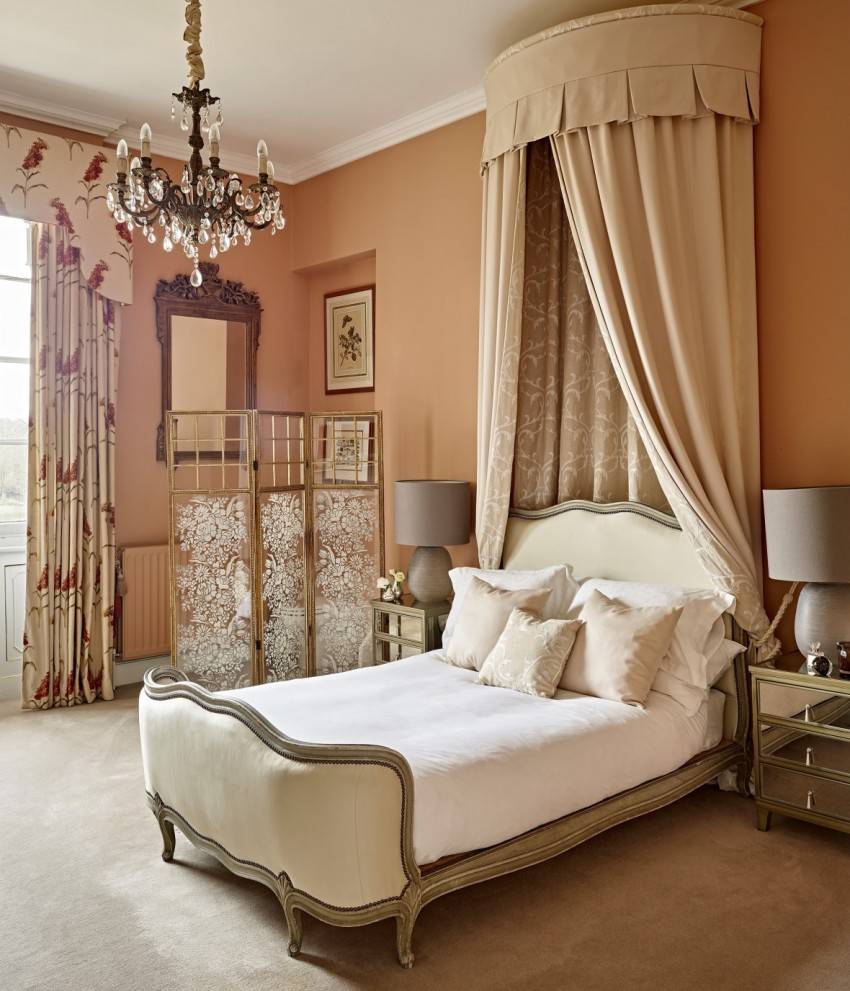Если по-другому никак, двуспальную кровать можно поставить одной из боковин к стене, но в этом случае свободное место должно быть в изножье, чтобы человеку, спящему у стены, не пришлось перелезать через своего партнера, тревожа его сон.