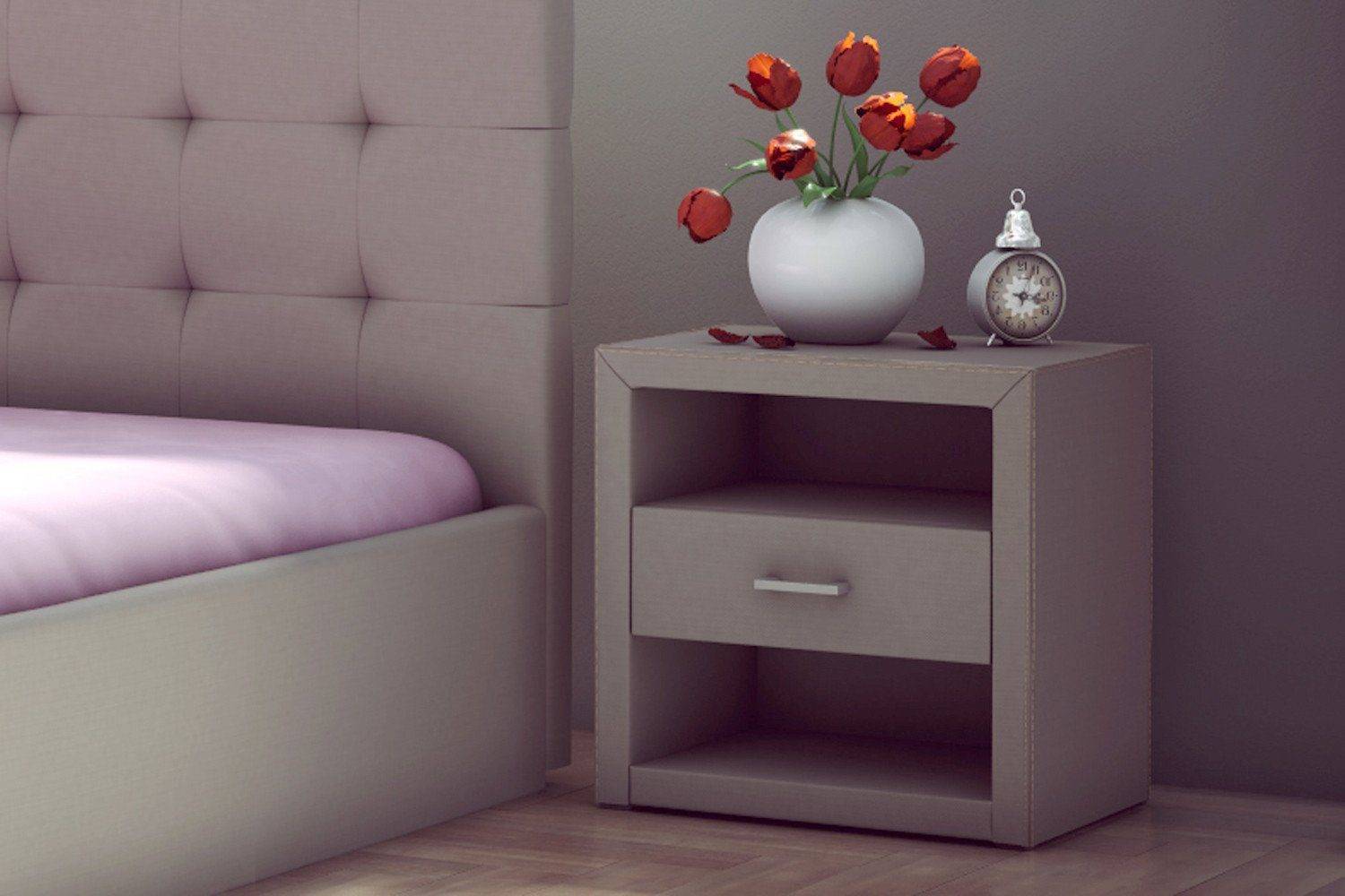 Если нет желания использовать дизайнерские находки, то можно купить фабричную тумбочку. Их материал изготовления не такой богатый, но зато более привычный:
