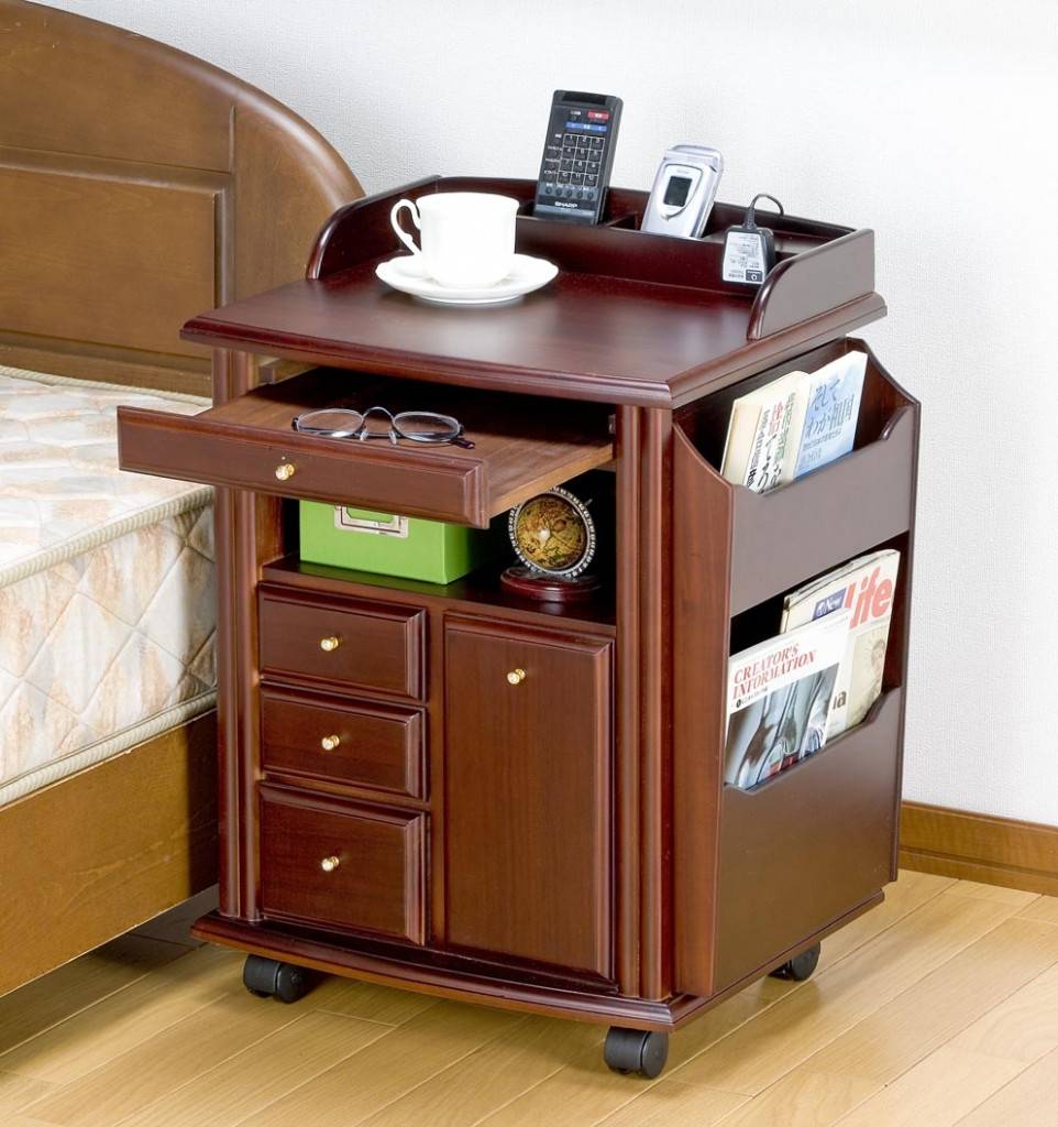 Кому-то подойдет аккуратный прикроватный мини-столик с минимумом выдвижных ящиков, а может и вовсе без них. Его предназначение – размещение светильника и будильника. Другим потребуются максимально функциональные образцы с множеством секций. Причем они могут быть как закрытого, так и открытого типа.