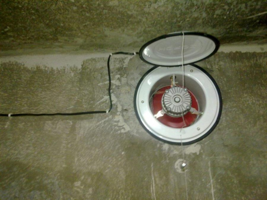 - При монтаже системы в погреб, который стоит отдельно, отверстие делают в потолке. В дырку выводится воздуховод, затем фиксируется.