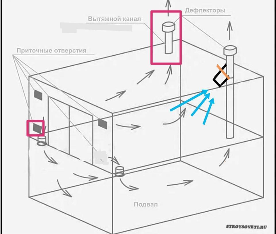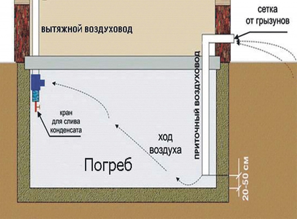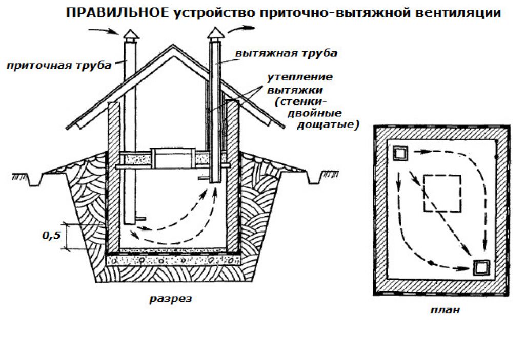 Схема естественной вентиляции погреба в частном доме
